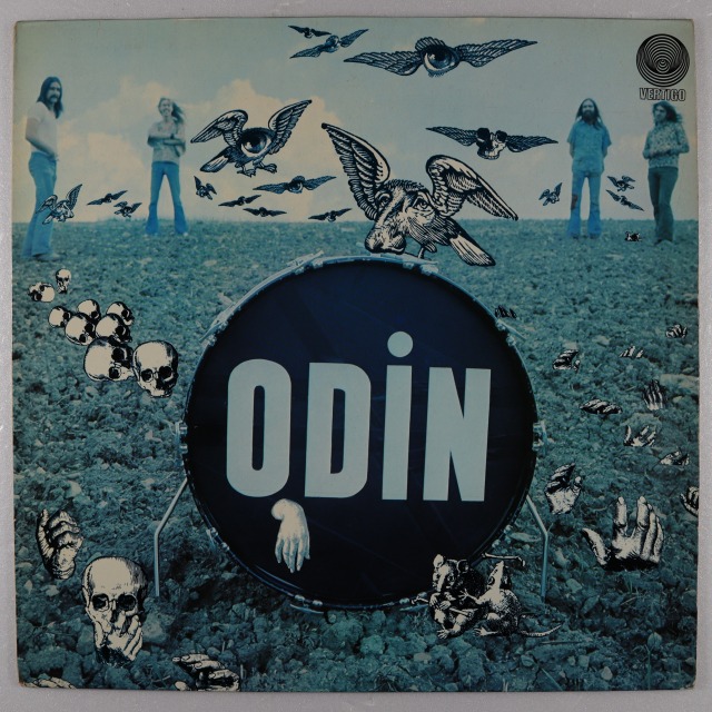 The impressive cover of Quatermass's celebrated song "Gemini" is a highlight of the only album by the German-UK hybrid organ prog band Odin. Upon close examination, the cover shows slight wear at the lower right corner, but it is otherwise in excellent condition with no major flaws. The included poster is unused, though it has a small tear in one spot that is not very noticeable. The record has light scratches and minor marks throughout, and there may be slight surface noise, but overall, it plays well.
