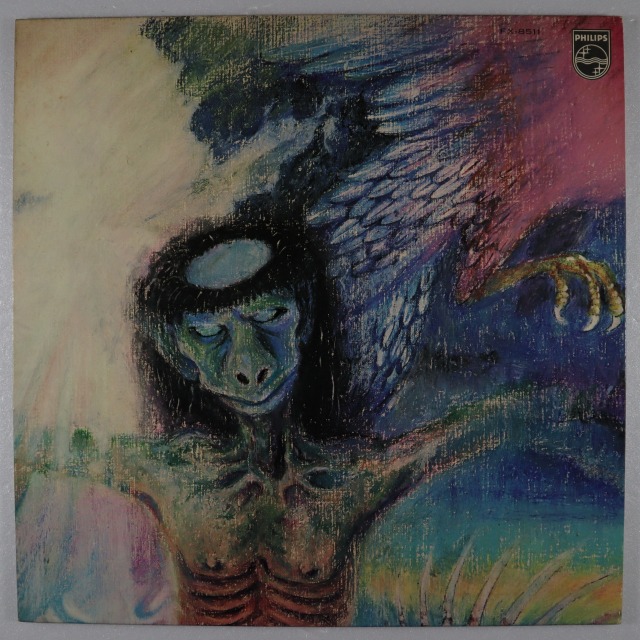 Acid-tinged psych folk album with the support of the label mates, Mighty Baby, with dark, eerie atmosphere here and there. The textured cover has a small crack at the bottom, yet has not split. There are also a few light stains, but overall, it is in decent condition despite its fragility. The often missing insert is securely included.